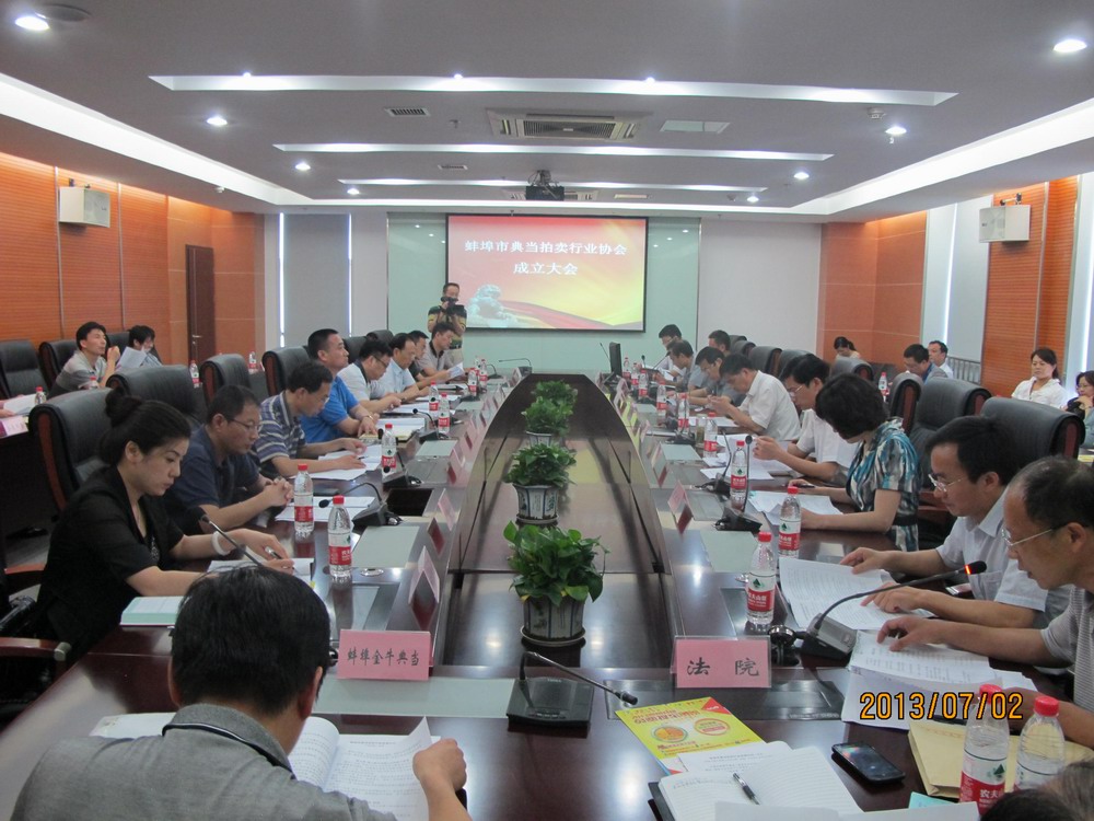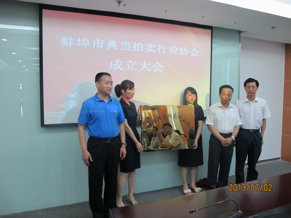 7月2日下午,蚌埠市典當(dāng)拍賣行業(yè)協(xié)會(huì)成立暨第一屆第一次會(huì)員大會(huì)成功舉行。市政協(xié)、商務(wù)局領(lǐng)導(dǎo)參加了會(huì)議。協(xié)會(huì)選舉興達(dá)典當(dāng)有限公司董事長(zhǎng)張建國(guó)為會(huì)長(zhǎng)。會(huì)上,市政協(xié)、商務(wù)局領(lǐng)導(dǎo)與各典當(dāng)公司、拍賣公司代表相互交換意見(jiàn)、深入探討,就協(xié)會(huì)今后的運(yùn)作發(fā)展進(jìn)行了規(guī)劃。