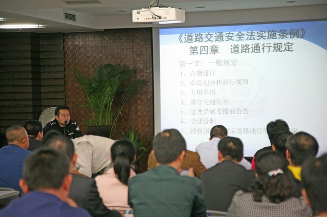 培訓課上,市交警支隊楊敬波警官結(jié)合典型交通事故案例為參訓人員闡述了交通安全的重要性、酒后駕車的危險性以及嚴格遵守道路交通法規(guī)的必要性。楊警官還結(jié)合我市正在開展的文明交通志愿服務(wù)活動,就城市交通的基本特點、交通志愿服務(wù)的基本要求以及交通服務(wù)志愿者在執(zhí)勤時對可能發(fā)生的各種現(xiàn)象應(yīng)當如何處置做了認真講解。