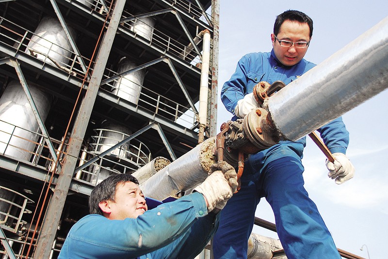 日前,安徽天潤化工股份公司兩名職工在對生產(chǎn)設(shè)備進行巡檢。春節(jié)期間,全市6萬多名干部職工放棄休息,堅守在生產(chǎn)一線,度過了一個別樣的新春佳節(jié)。