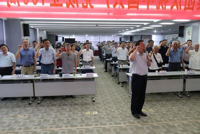 在鮮紅的黨旗下,黨員同志們莊嚴地舉起右手,重溫入黨誓詞,這是初心使命的再宣示,是接續(xù)奮斗的再出發(fā)。在激昂的樂曲中,集團黨委班子成員為5名老黨員代表發(fā)放“光榮在黨50年”紀念章、佩戴紅花。沉甸甸的紀念章不僅僅是對老黨員的最高禮贊,更是激發(fā)集團廣大黨員干部續(xù)寫時代新篇章的強大動力。隨后,陳建功為全體與會人員作了黨史專題黨課。